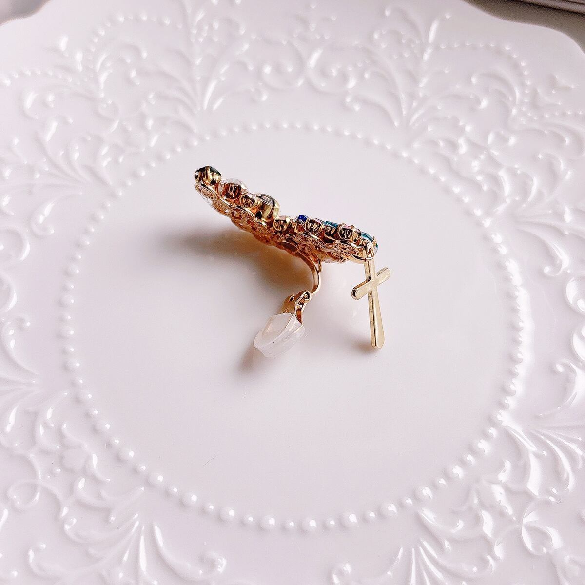 クロスや小さいスターが揺れるタイプのイヤーカフ。