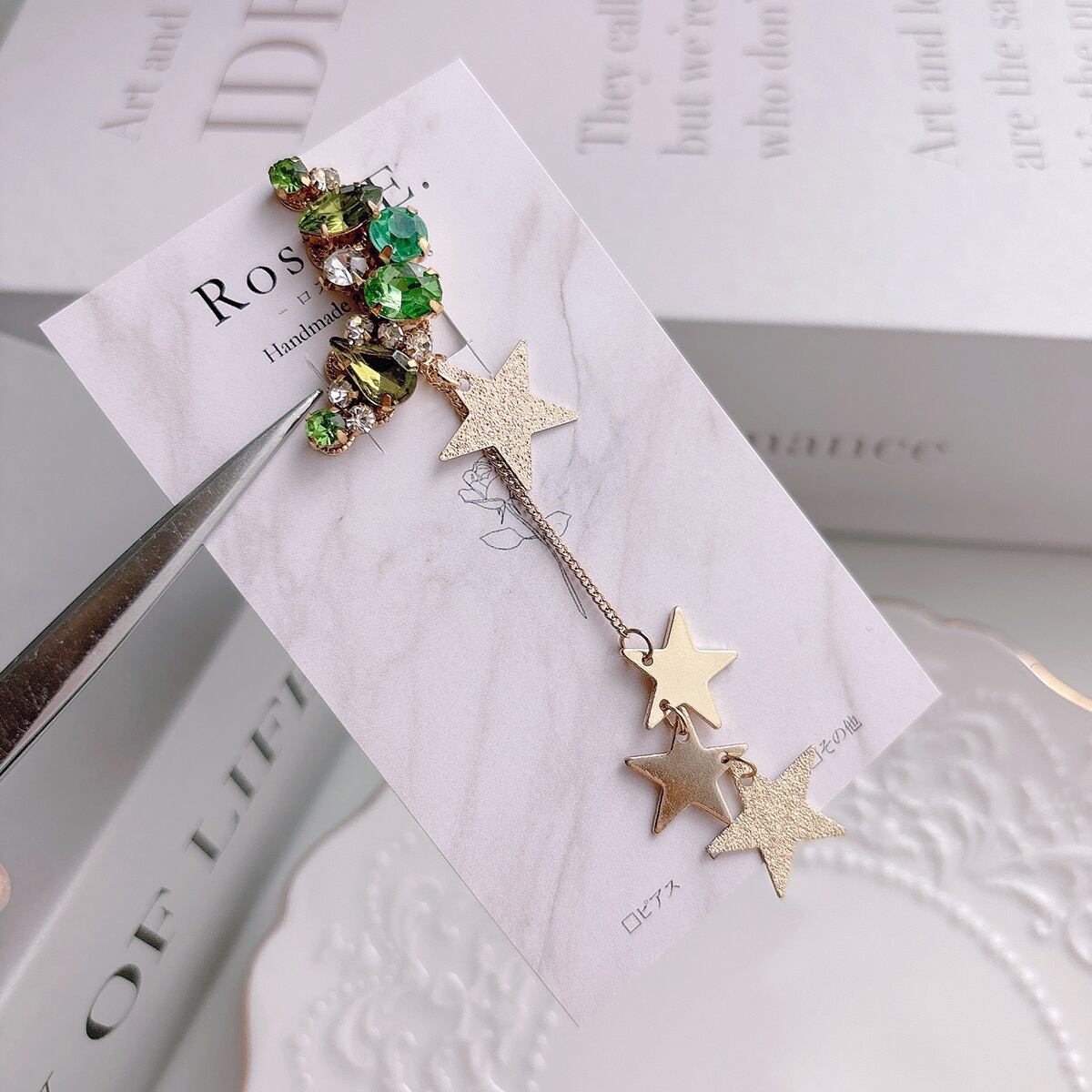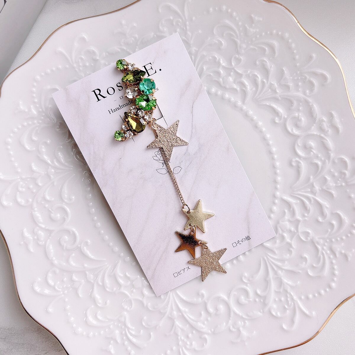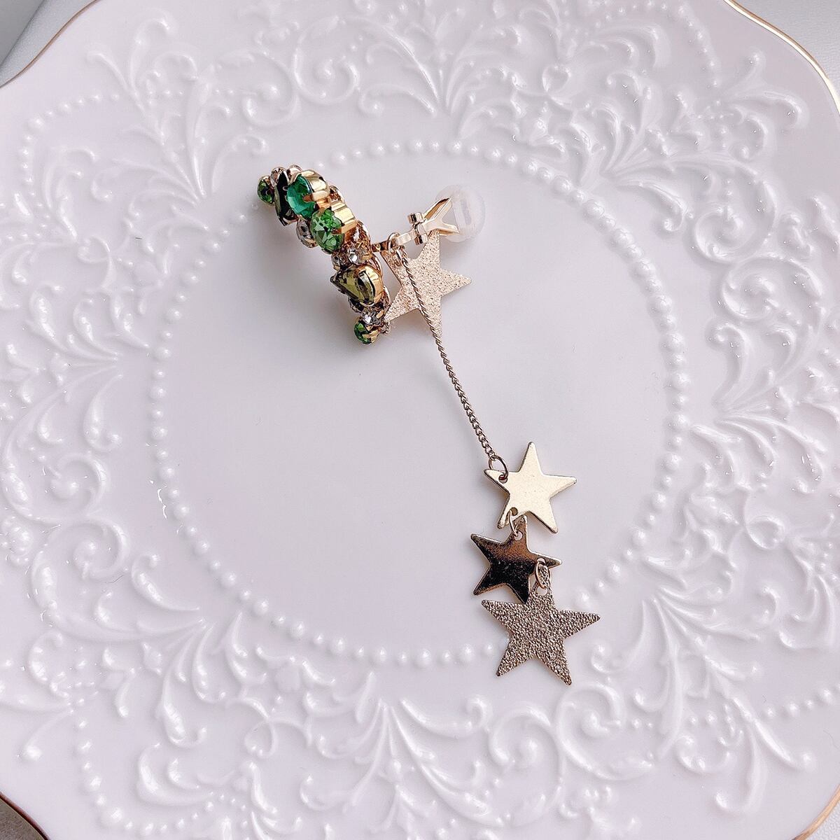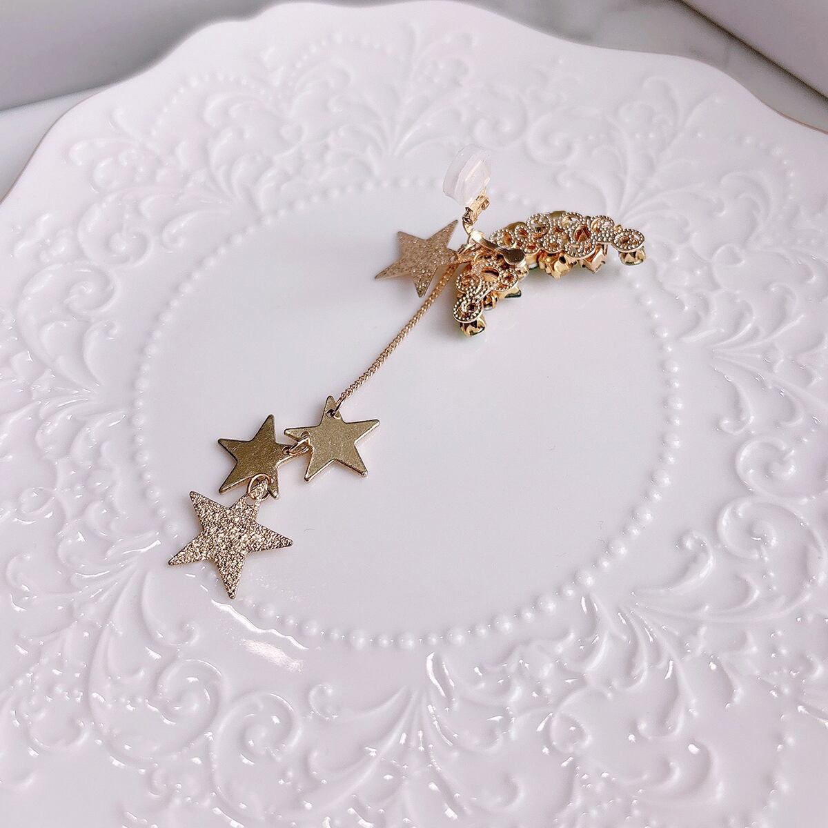 前回販売したスターのイヤーカフよりもチェーン部分が長くなっていたり星のアレンジも加えたデザイン。