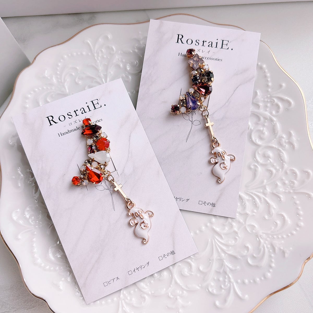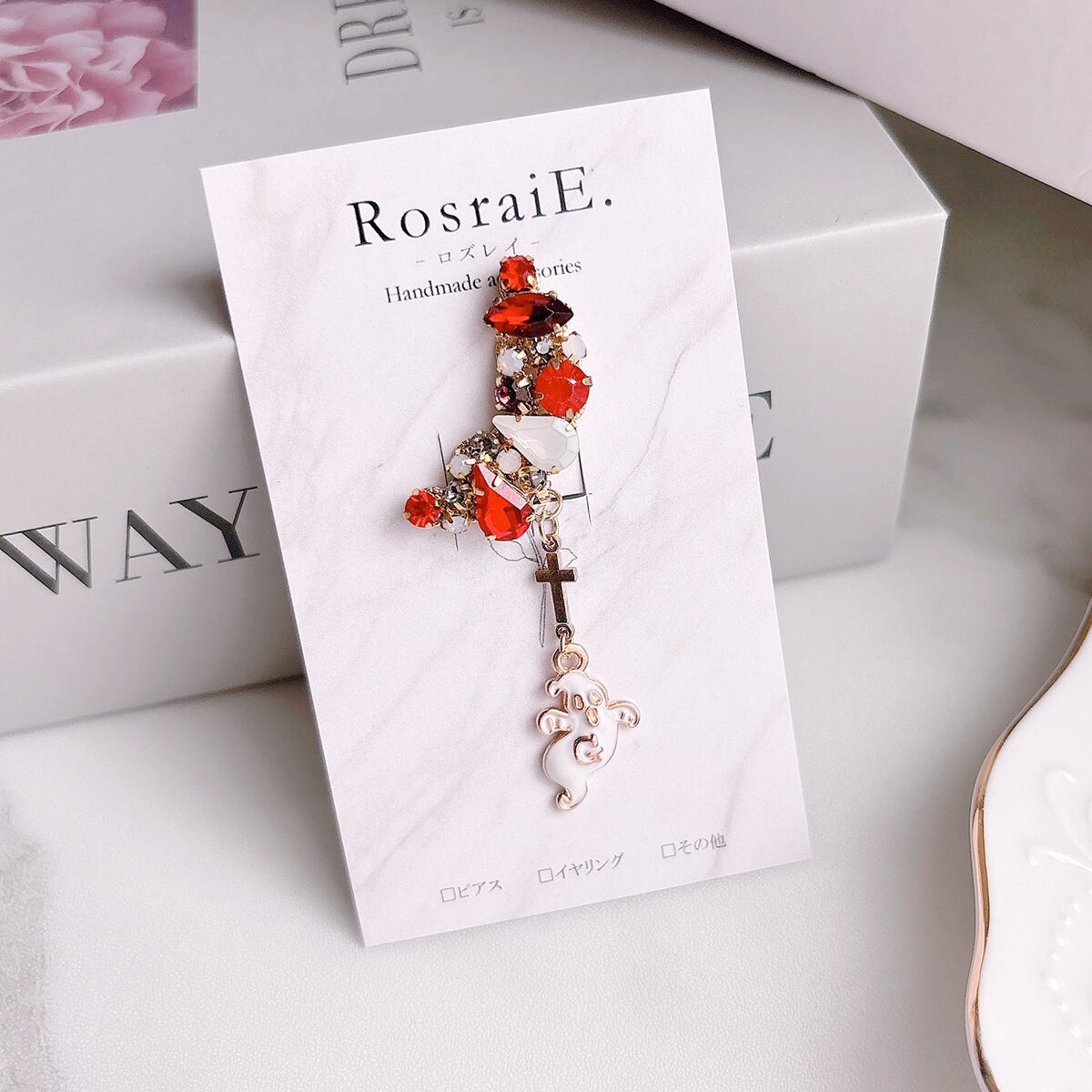 【suzuran】1点限り★クロスゴースト キラキラビジュー イヤーカフ(レッド)