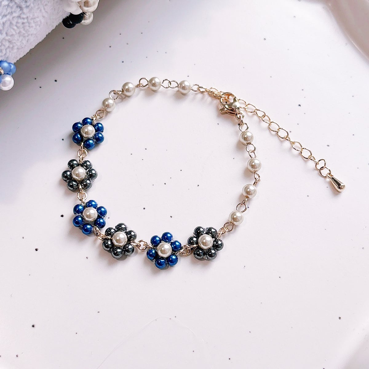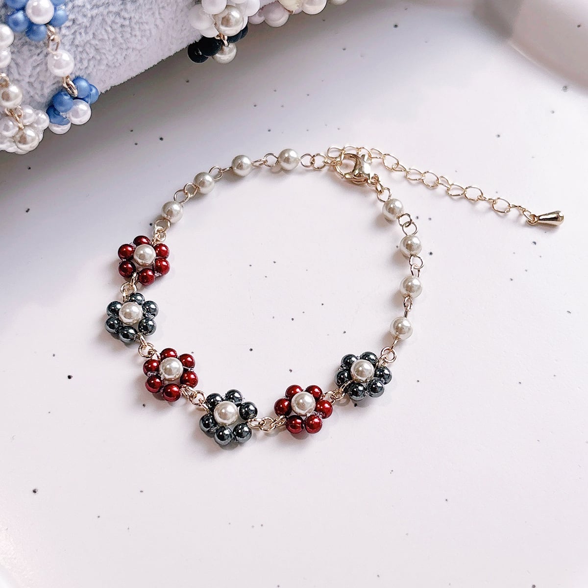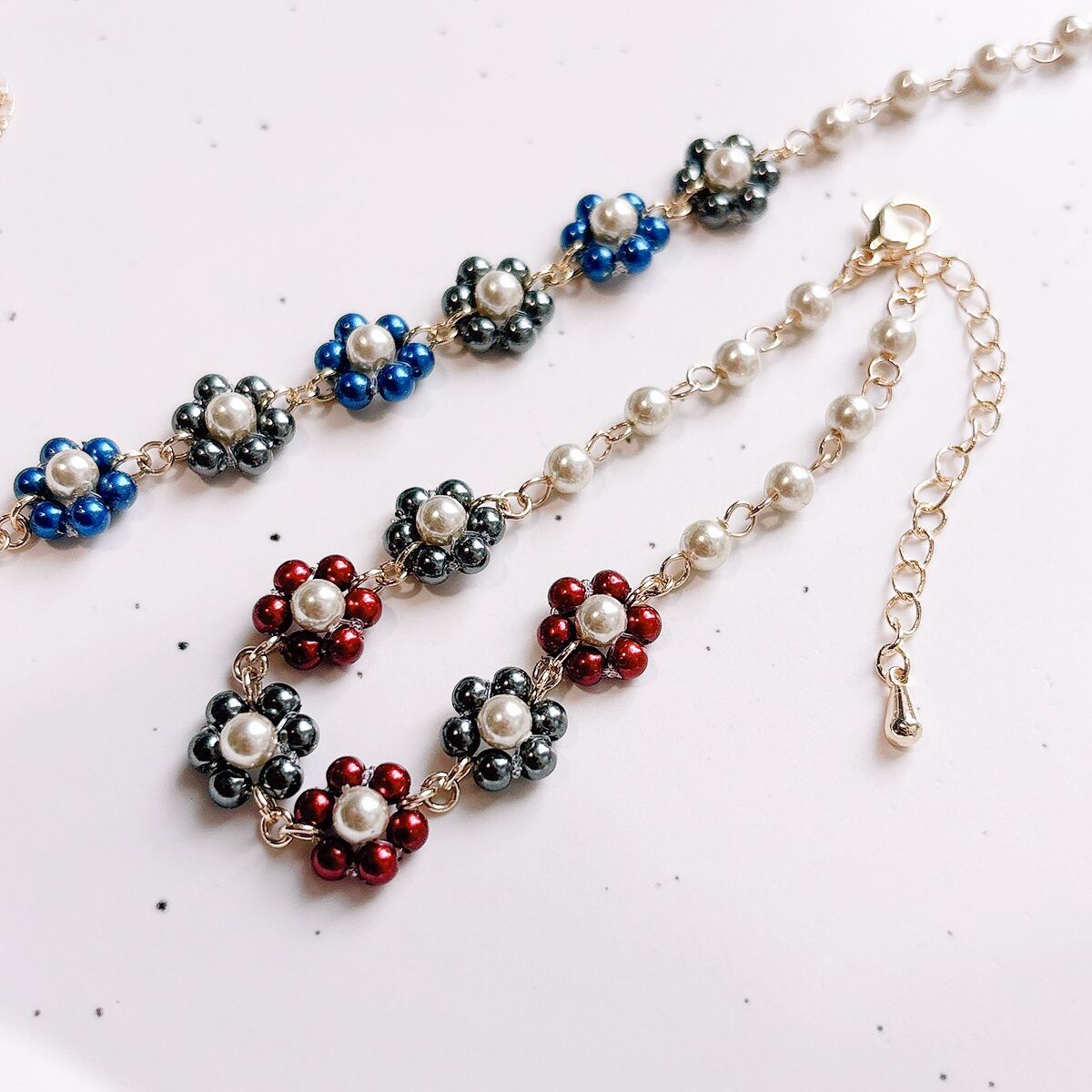【suzuran】バイカラー フラワーパール 華奢 ブレスレット