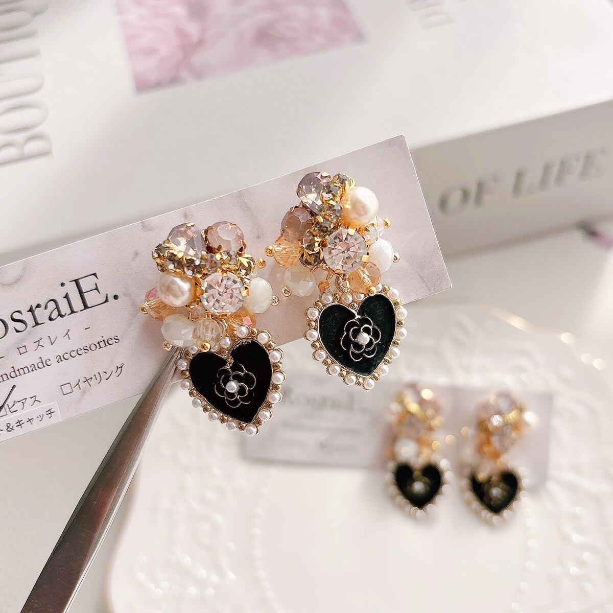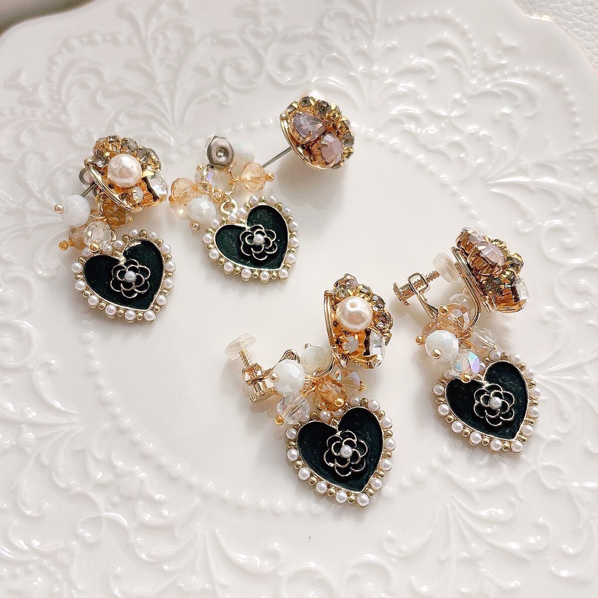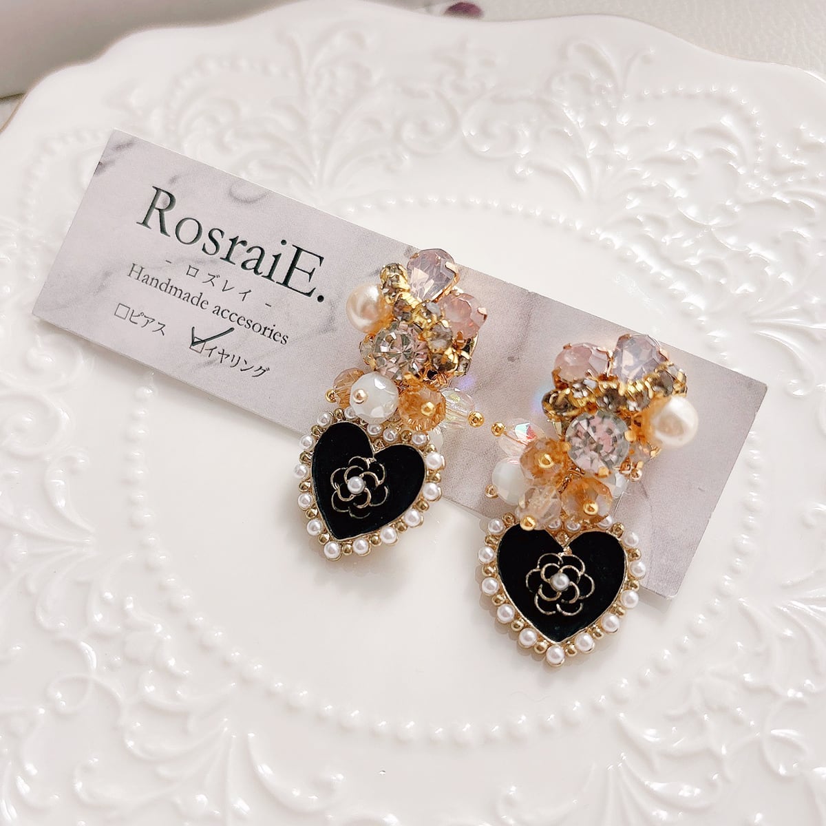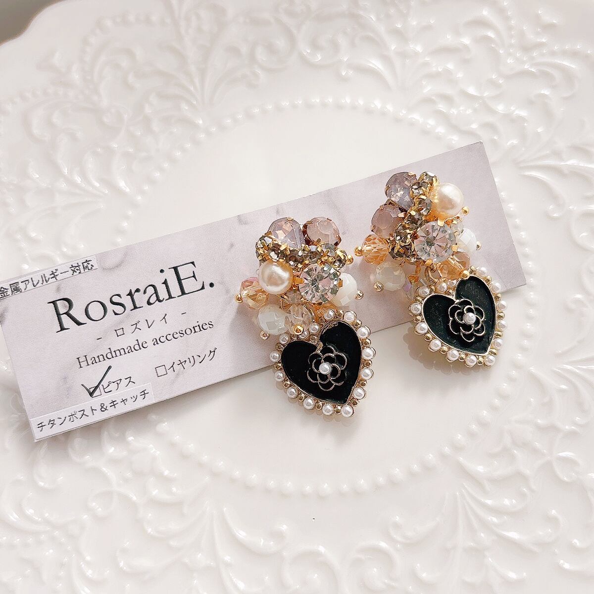 【suzuran】カメリアハート ビジュー ピアス/イヤリング