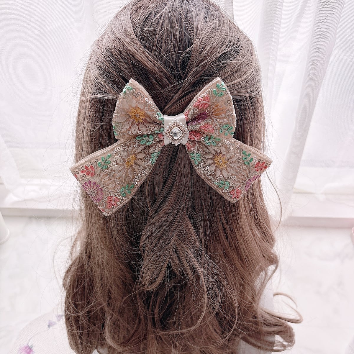 【ATELIER de BOUQUET】フラワー インド刺繍リボン BIGヘアクリップ