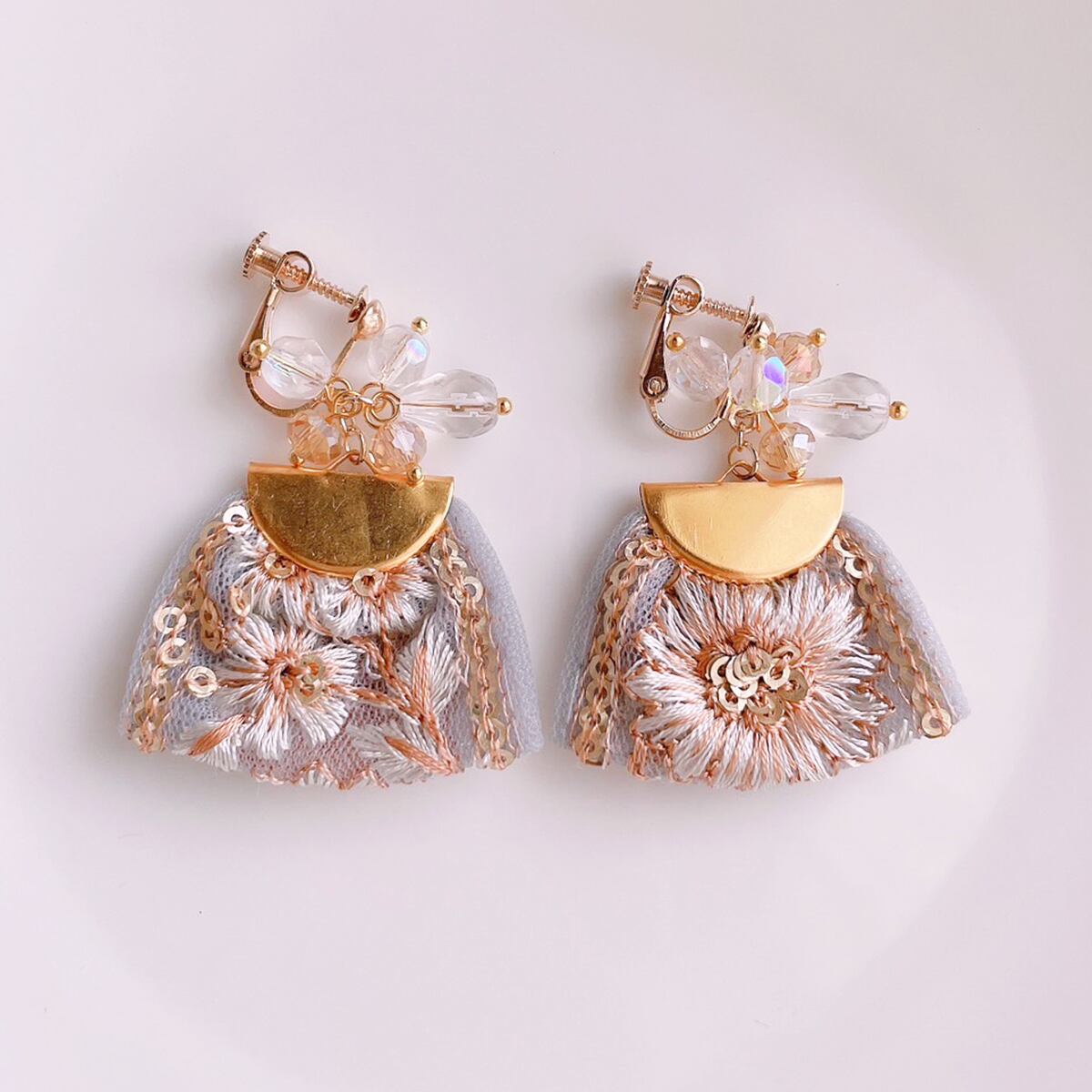 【suzuran】インド刺繍リボン×クリアビーズ ピアス/イヤリング