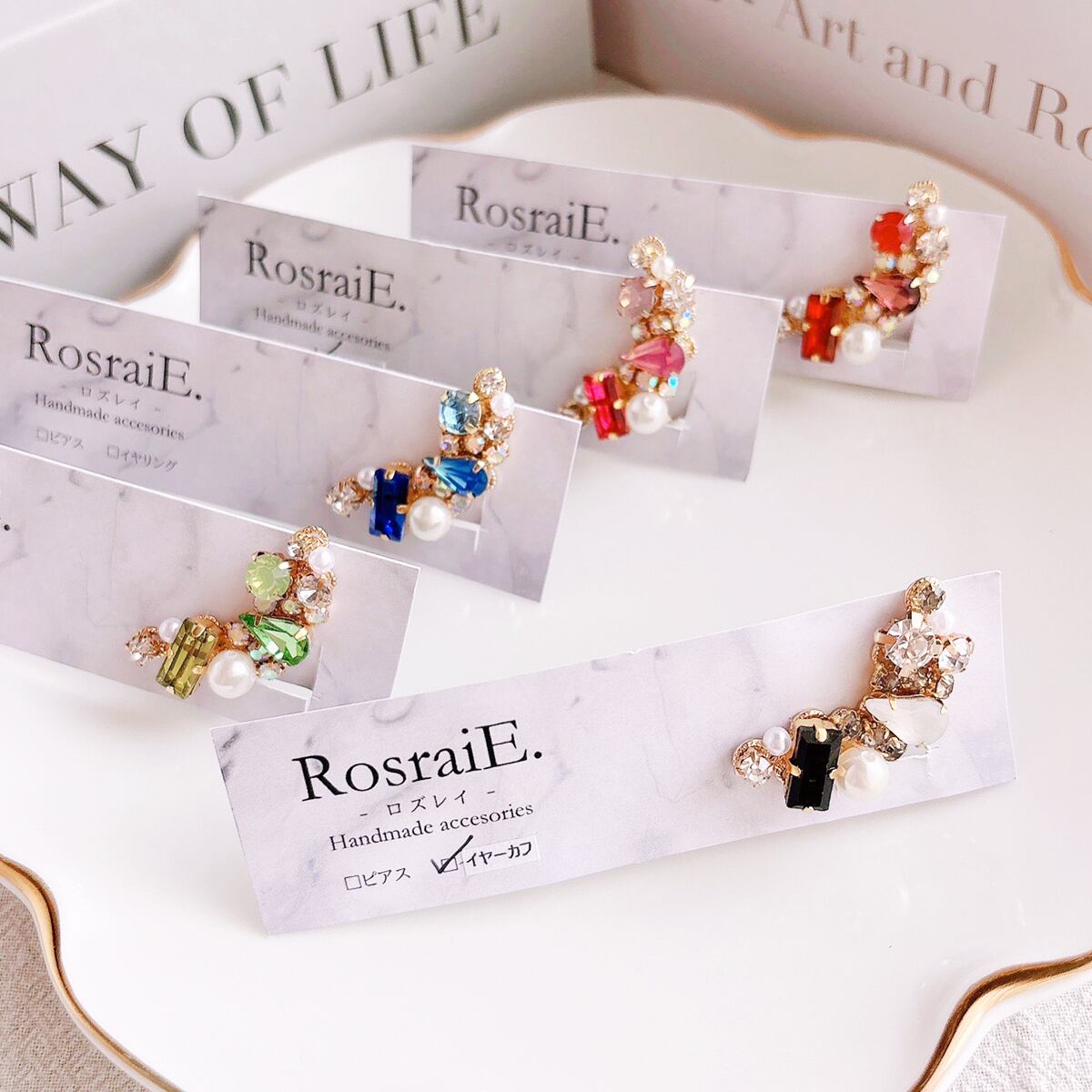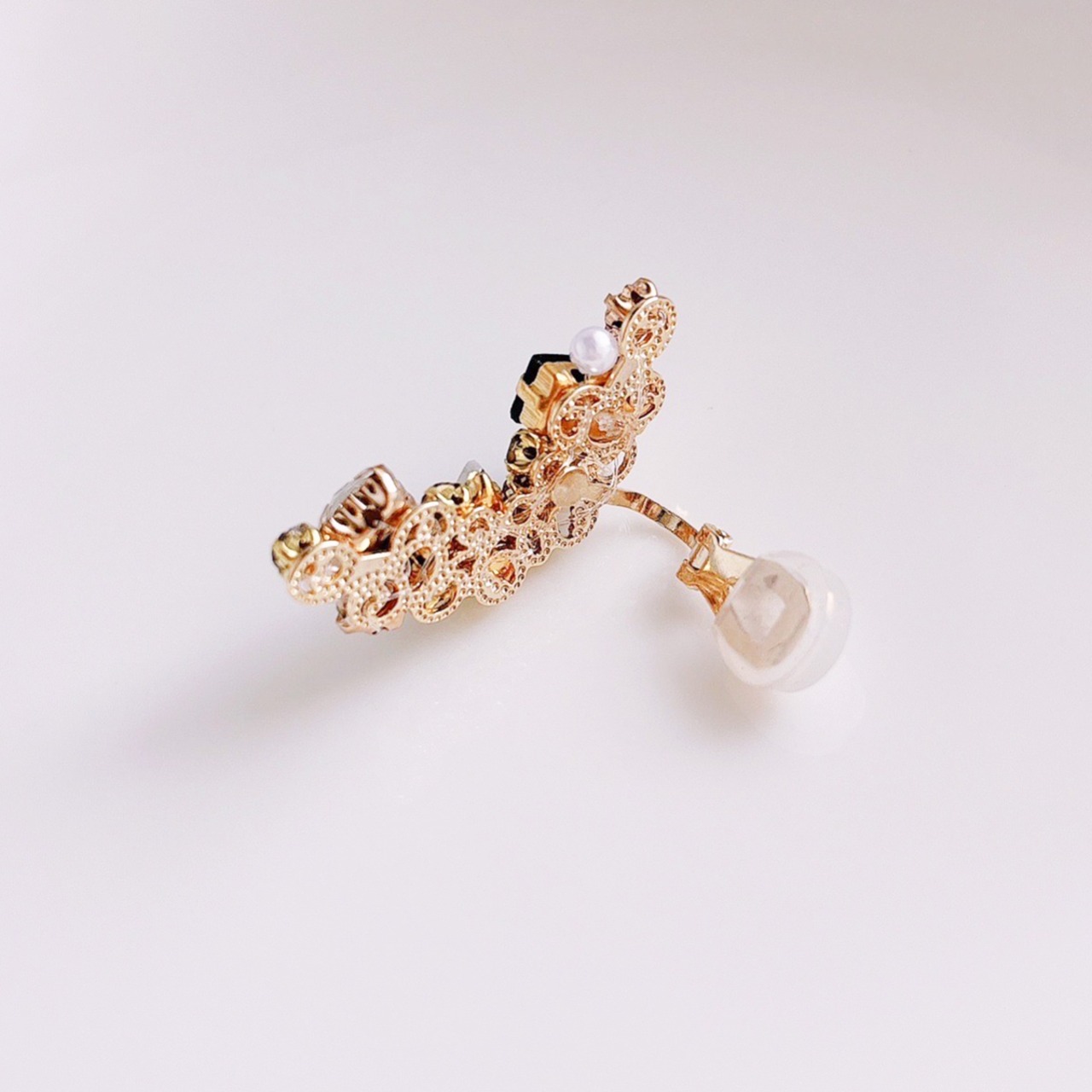 キラキラ輝くカラービジューとパールを使った華やかなイヤーカフ