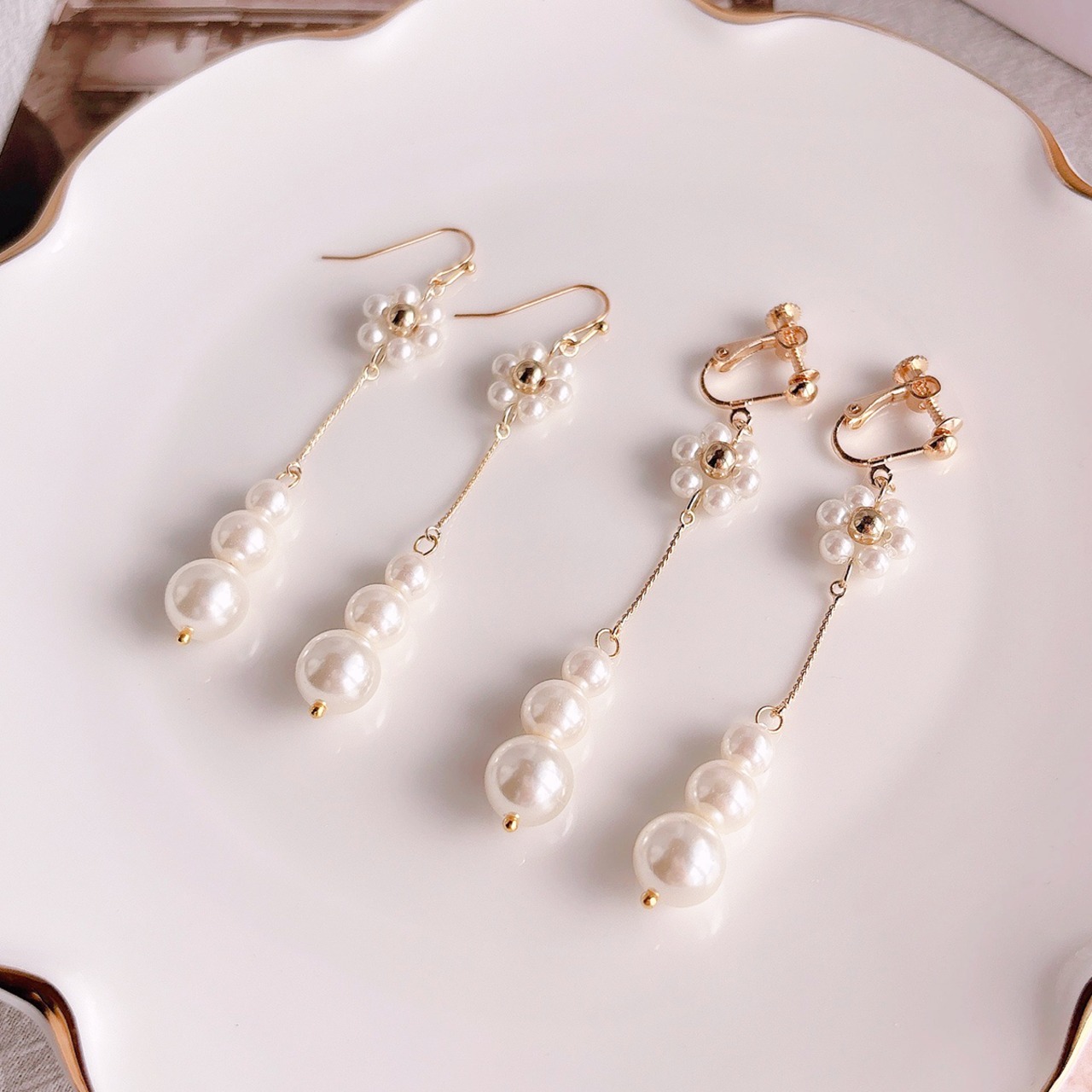 【suzuran】フラワーパールロングチェーン ピアス/イヤリング